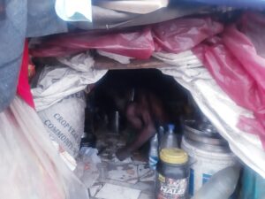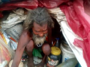 कमाल की बात यह है कि यह बुजुर्ग व्यक्ति कोई पागल व्यक्ति नहीं है । बिल्कुल स्वस्थ मस्तिष्क का यह व्यक्ति है।लेकिन उस व्यक्ति की परिस्थितियों ने उसको यहां पहुंचा दिया है। वहां पर चारों तरफ कूड़ा है, और फटे पुराने कपड़े हैं। वहां पर फेंकी हुई पुरानी पन्निया है। मगर वह बुजुर्ग व्यक्ति हड्डियों का ढांचा है। जो अपने उस कूड़े वाले घर में उकड़ू बैठकर सरक सरक कर अपने उस घर के अंदर जाता है।